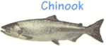 |  | Chinook Salmon Black gums, heavily spotted tail, weighs between 1.5 and 30 kg.