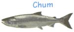 |  | Chum Salmon White tip on anal fin, narrow tail base, weighs 4.5 to 6.5 kg.