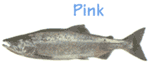 |  | Pink Salmon Tiny scales, large oval spots on V-shaped tail, weighs 2.2 to 5.5